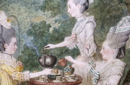 Dès le 18ème siècle, ces nouvelles saveurs trouveront leur place dans les salons mais pas ceux de tout le monde. En raison du coût élevé de ces matières premières importées, thé, café et chocolat sont alors des produits de luxe, voire de prestige. L’engouement qu’ils suscitent conduira à la création d’accessoires de table et de mobilier propres à leur consommation. Plus tard, ils descendront dans les rues et seront consommés dans les lieux publics : le café est né. Ils contribueront aussi au développement de nouvelles pratiques comme le goûter et le petit-déjeuner.